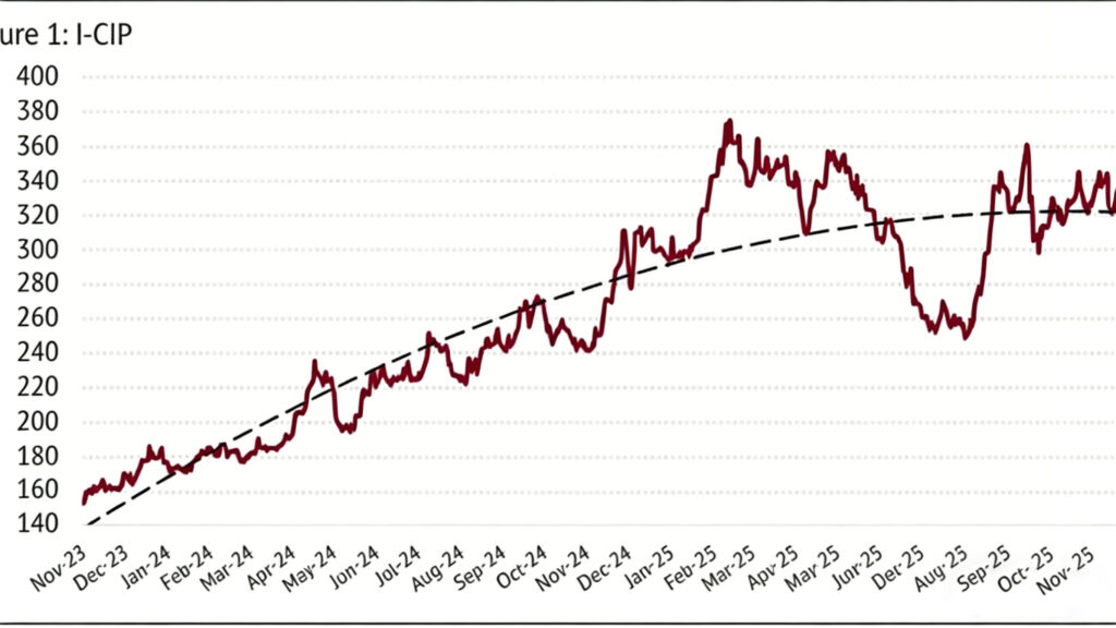 According to data from the International Coffee Organization (ICO), the global composite indicator price averaged 330.44 US cents per pound in November 2025, representing a 1.2% increase from the previous month. Prices oscillated between 320.39 and 343.92 cents per pound.