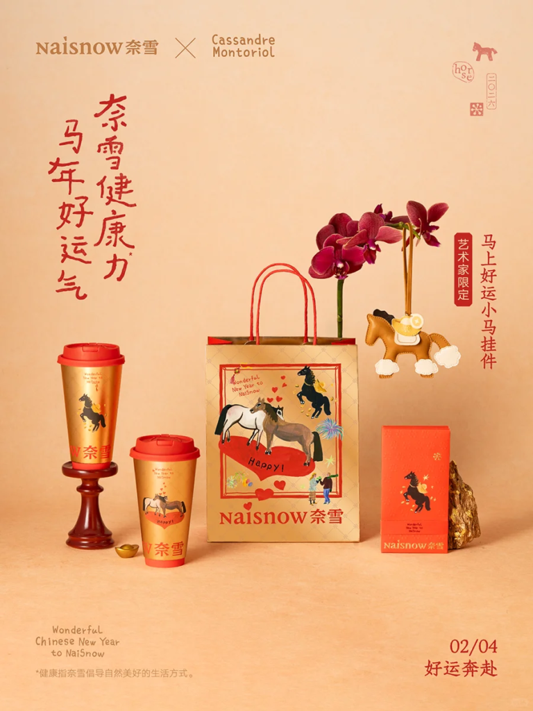 The Move: Naìsnow(奈雪的茶) launched a co-branding campaign with French luxury artist Cassandre Montorio, offering themed merchandise with a combo meal. NO YEYE NO TEA(爷爷不泡茶) partnered with the character “Chucky” (恰吉), releasing special drinks and offering stickers and magnets with combo purchases.